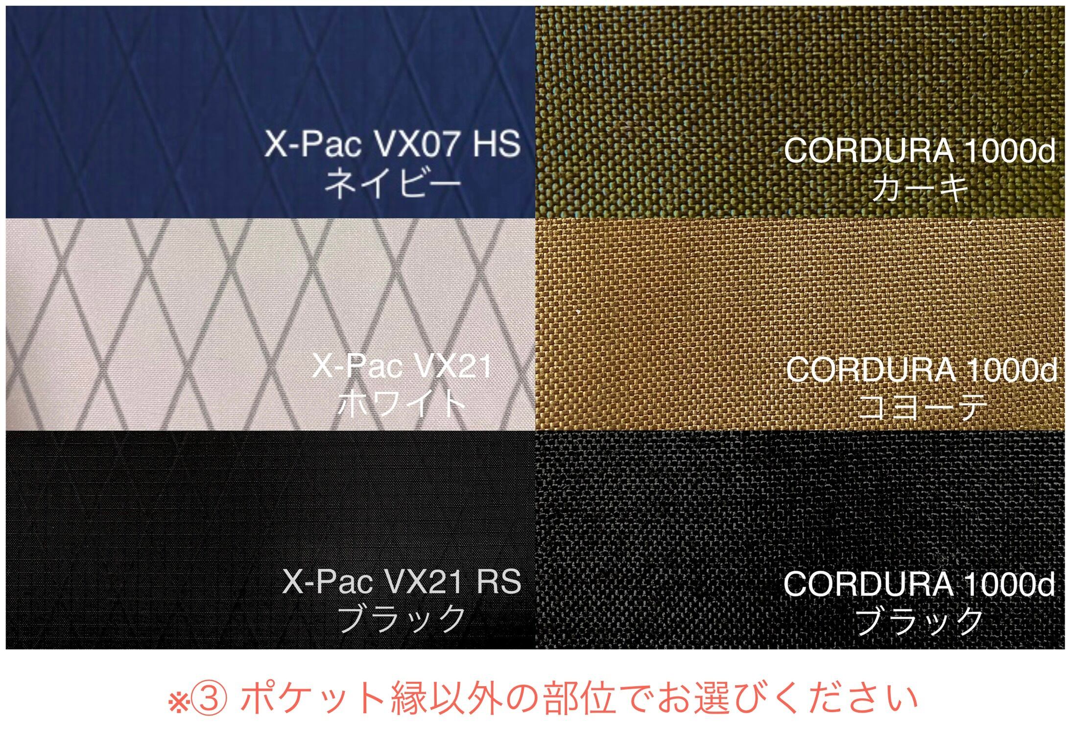 ⑨サイドポケット :メッシュ、底の生地: CORDURA 1000d オリーブ