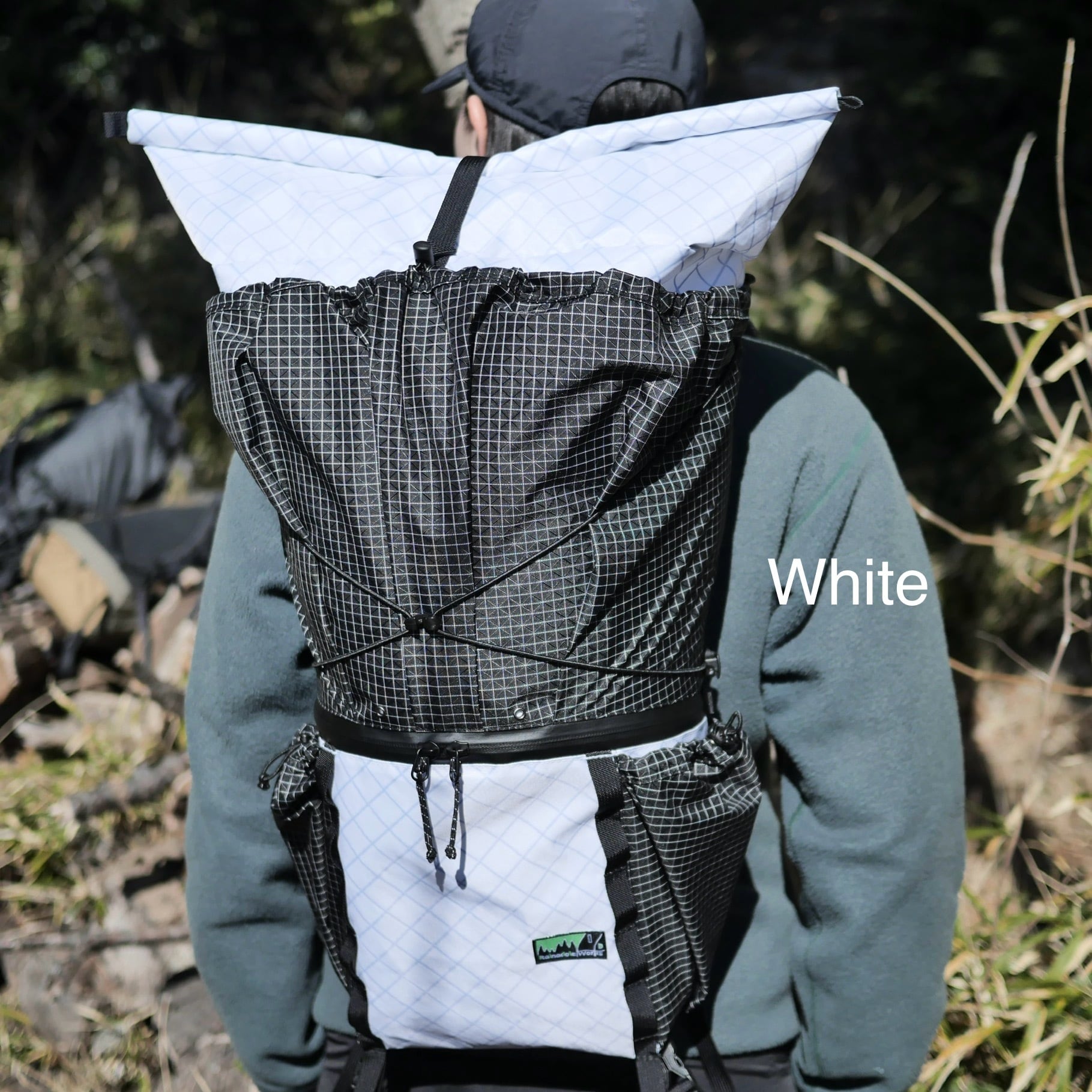 吹き流し部(ロールトップ)の巻き方次第で、内容量の調節だけでなくフォルムも自由自在と変えることができます。最大限ギアを詰めればサクサク動くファストパッキングやオーバーナイトハイク、吹き流し部を巻ききればデイハイクから普段使いまでマルチに活躍します。