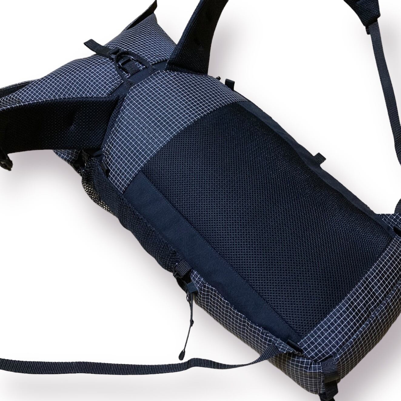 頻繁に縦走やファストパッキングを楽しむ中でこれまで多くのザックを使ってきましたが、シンプルで小走りしやすいフォルムかつ、普段使いにも馴染む素材感のものが欲しいと思い、試作を重ねて納得のいくものがようやく完成しました。